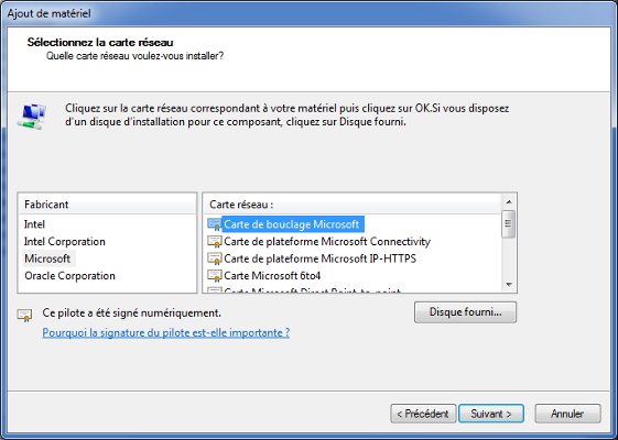 Sélectionnez "Cartes réseau" puis cliquez sur le bouton "Suivant".
